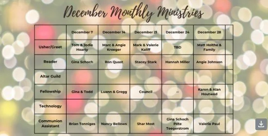 We also have Lenten Services, Easter Services, & a Christmas Eve Service.